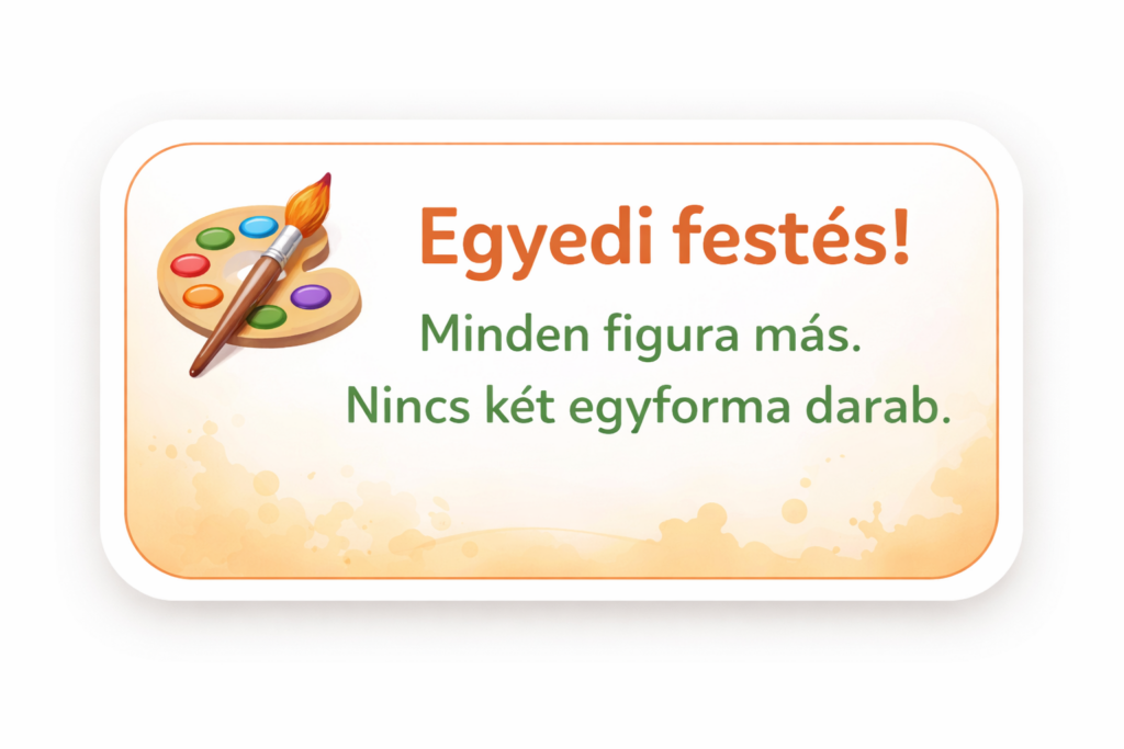 Minden darab egyedi, nincs két teljesen egyforma figura.